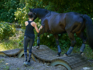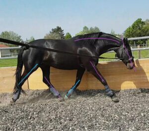 Dehnungshaltung: Diese Haltung dienst zum Dehnen der ganzen Oberlinie. Das Pferd sollte in den nötigen Abständen immer die Möglichkeit bekommen sich zu dehnen – am besten bis zur Schnall oder Nase im Sand, aber nicht jedes Pferd hat die Balance dafür – auch hier individuell. Dabei sollte darauf geachtet werden das die Nase nicht nur nach unten geht sondern nach VorneUnten.