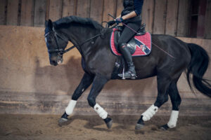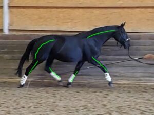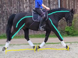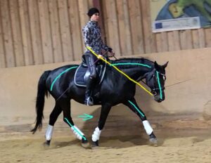 Arbeitshaltung: Das Pferd trägt den Hals etwas höher so dass das Maul übern Buggelenk ist.