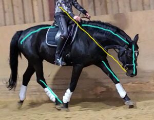 Es ist aber nun mal einfach, zu erkennen, ob die Nase es Pferdes vor, an oder hinter der Senkrechten steht. Es wird schon komplexer das ganze Pferd zu beurteilen. Dazu sollte man den Rumpf, die Schulter, das Becken, den Hals, den Widerrist und das Genick betrachten. Pferde die ein leichtes Genick haben, wie die Moderne Sportpferdezucht, und noch wenig Kraft im Hals und Rumpf besitzen, kippen sehr schnell mal hinter die Senkrechte. Sie verkriechen sich sehr leicht, dem sollte man mit Training entgegen wirken - das braucht aber seine Zeit.